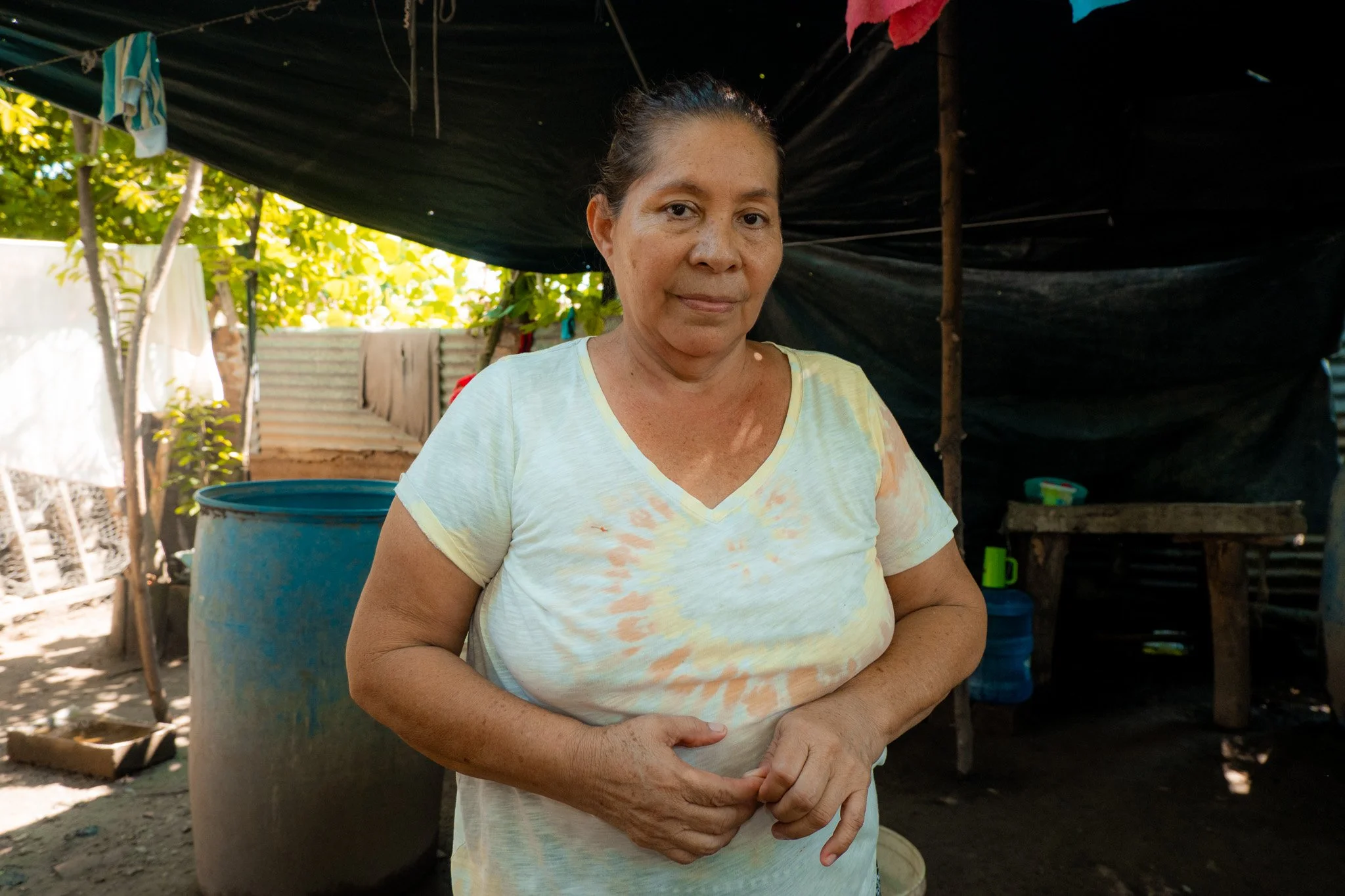 María sells mops and also raises chickens for her family’s consumption. She attends church regularly.