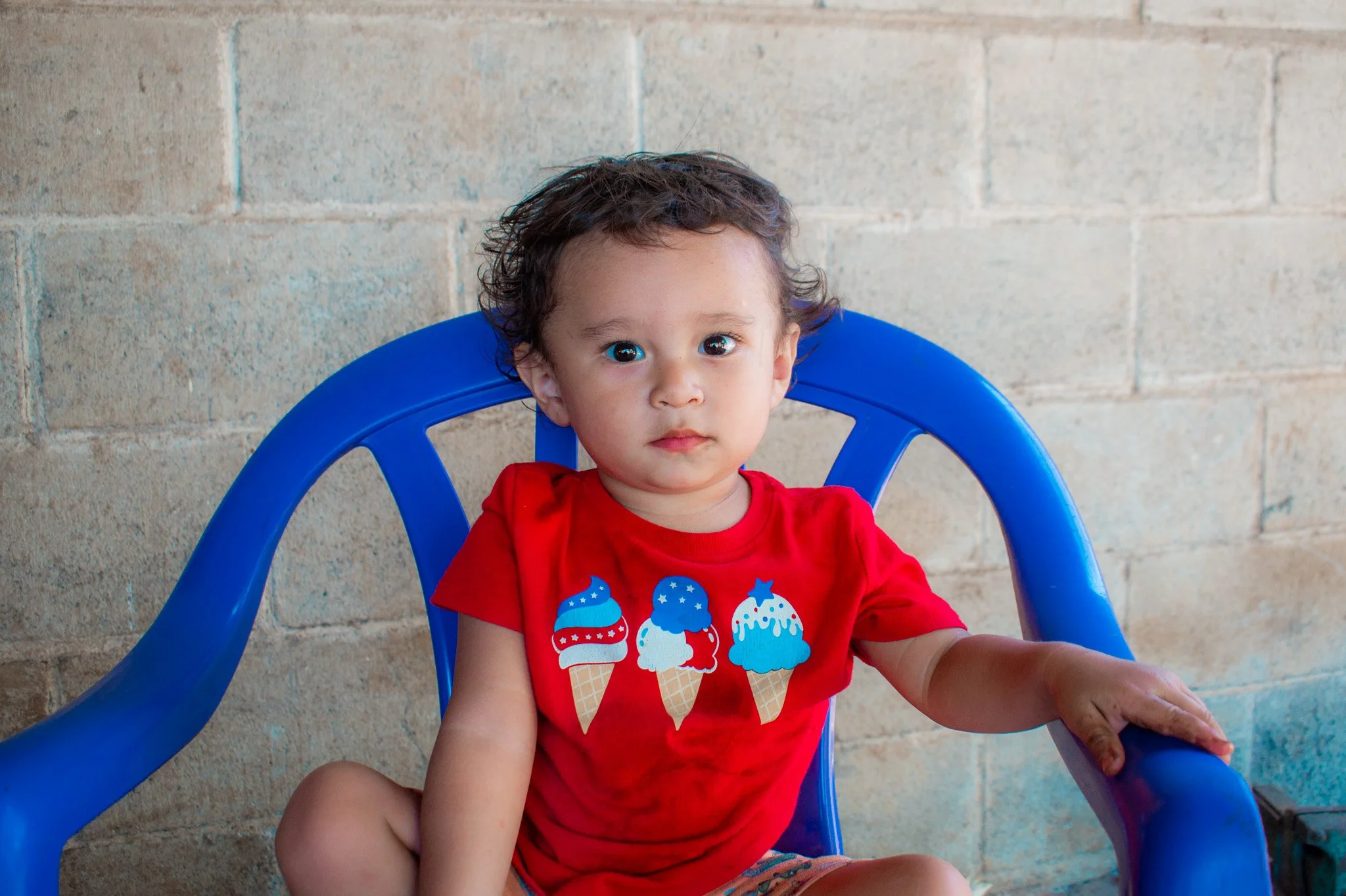 He is a charismatic and cheerful child. He loves being at home with his mother and playing with his toys.