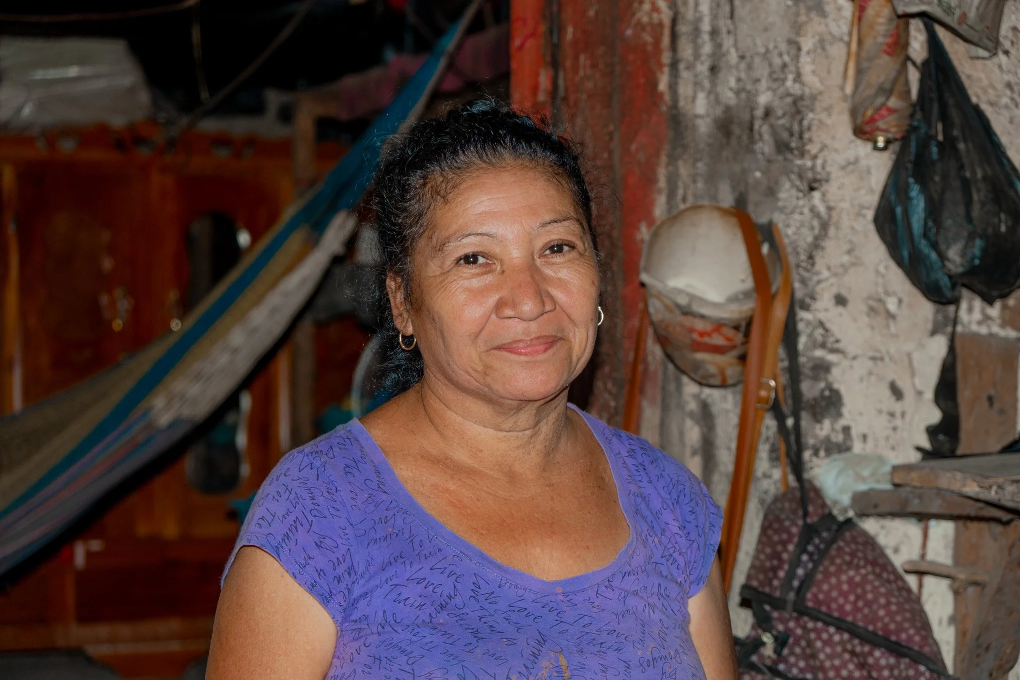 Maria does different types of jobs, from harvesting and selling mangoes, to cultivating flowers that are sent to a different community every week. Maria lives with her husband, her daughter and grandson.