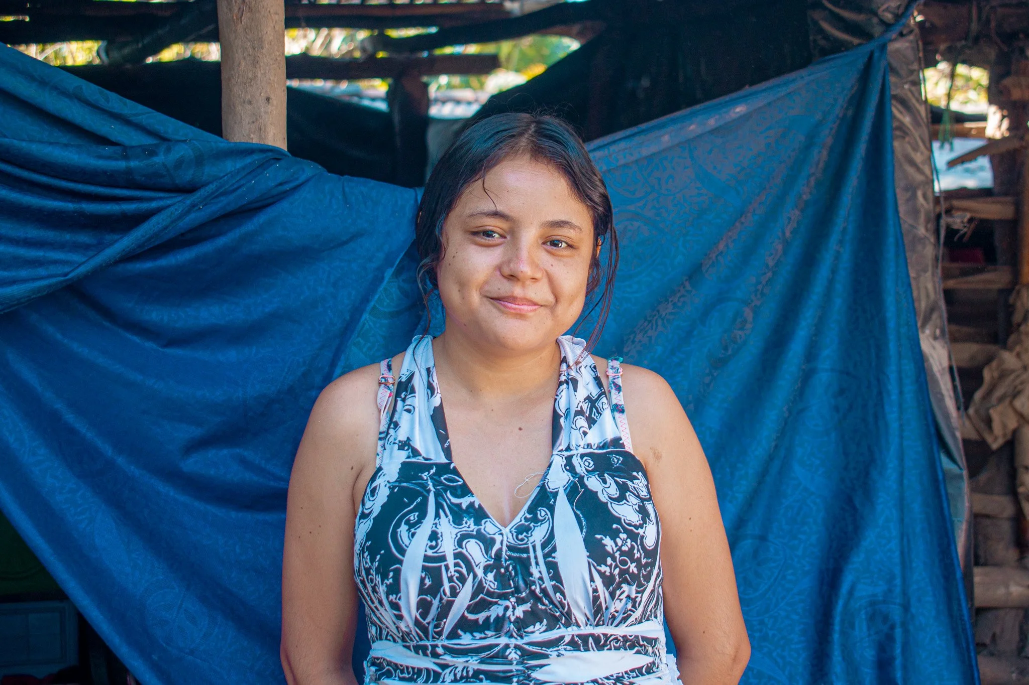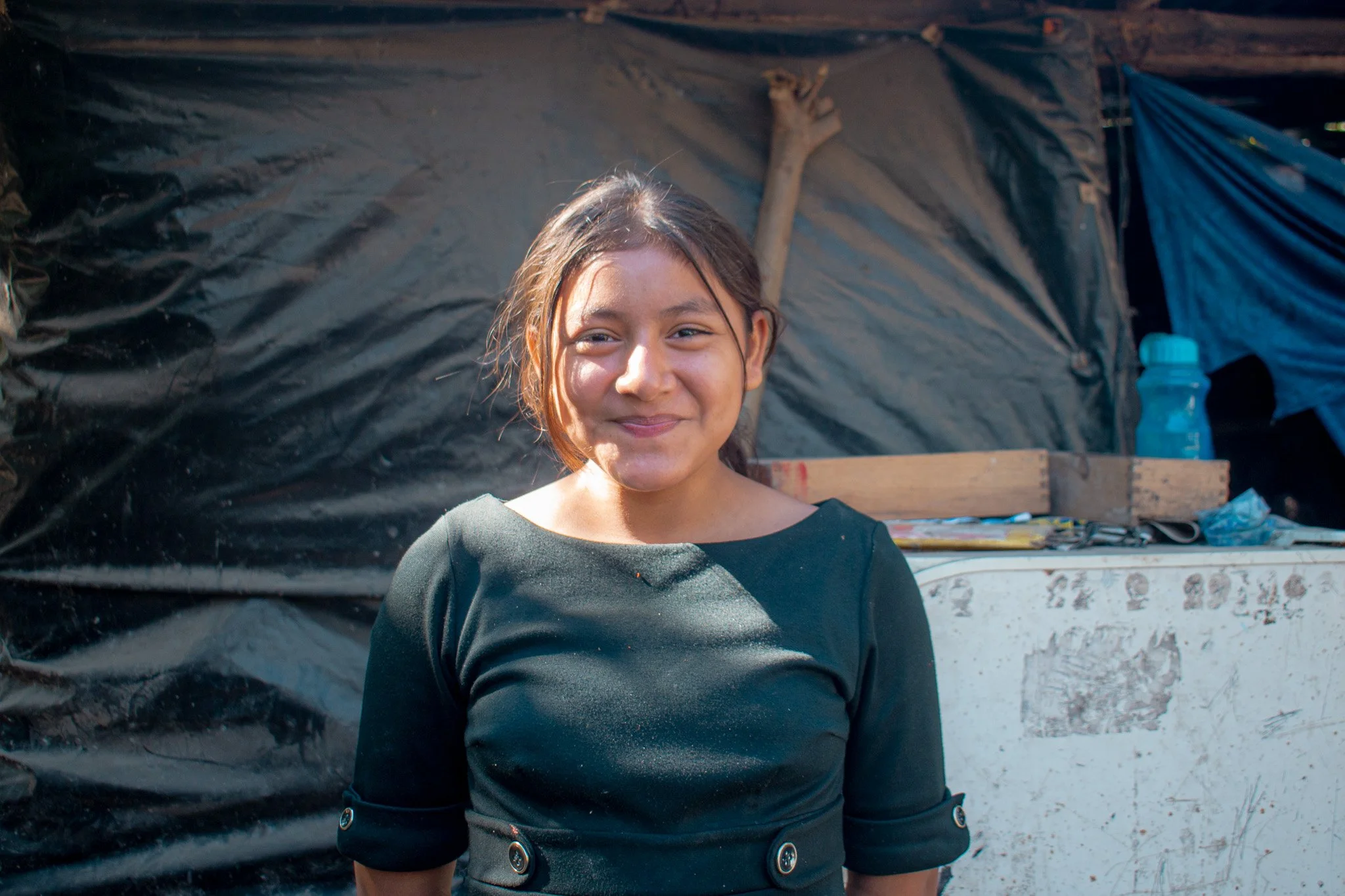 The current house where they are living is made of plastic and is temporary, because last rainy season their home suffered significant damage. A roof beam collapsed, and the house became uninhabitable.