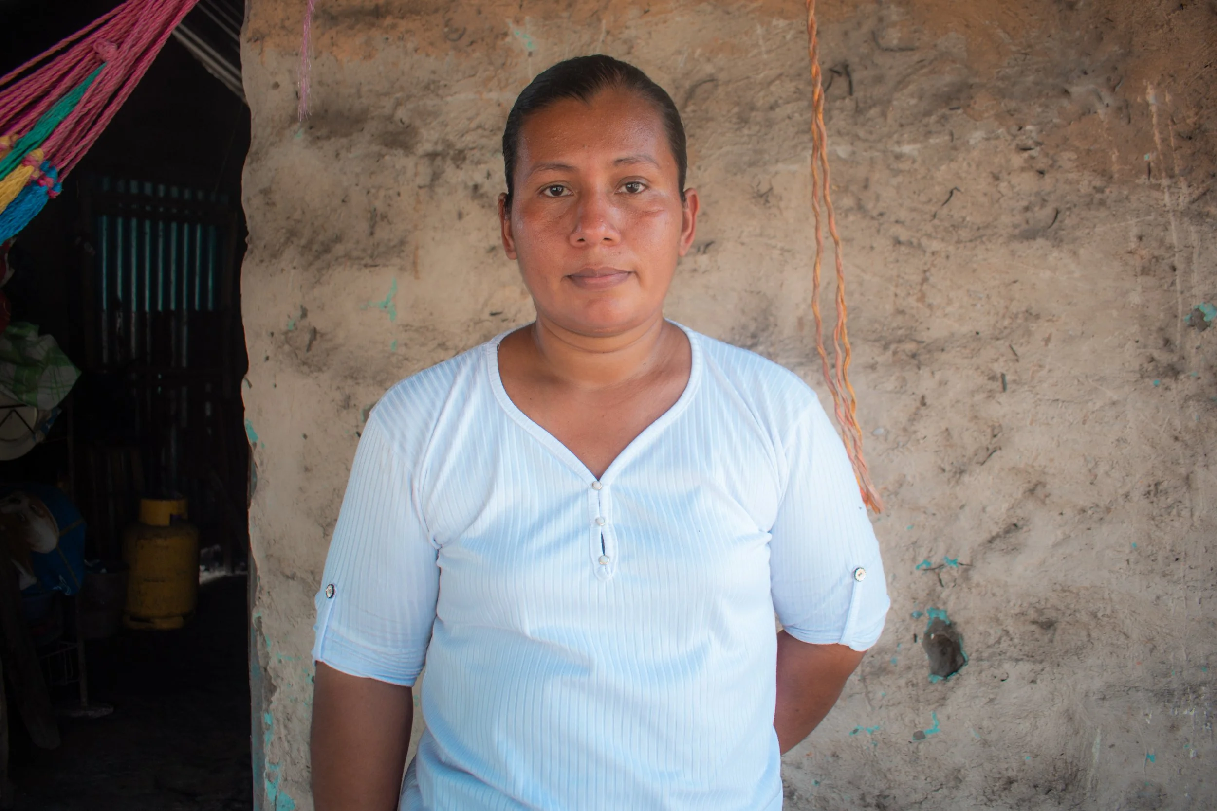 They have been living together in the house for 6 years, and it was built 18 years ago. It is made of adobe, and the roof has deteriorated metal sheets. Her husband is the owner of the land and the house.