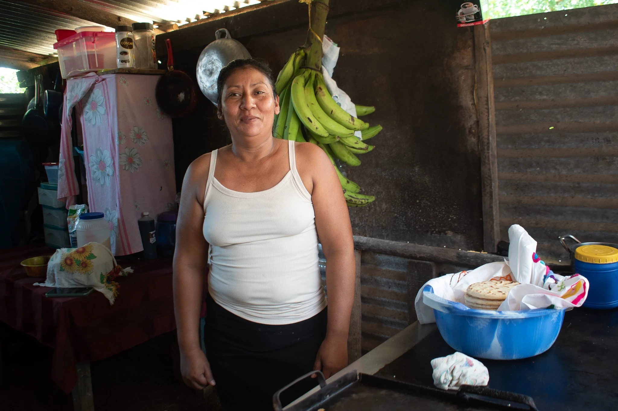 She enjoys making tortillas for her and her family, and she also likes to clean the house. They have been living in the same house for about 18 years now, the lote where they live it’s owned by her husband. She has 3 daughters but they were not at home during the interview.