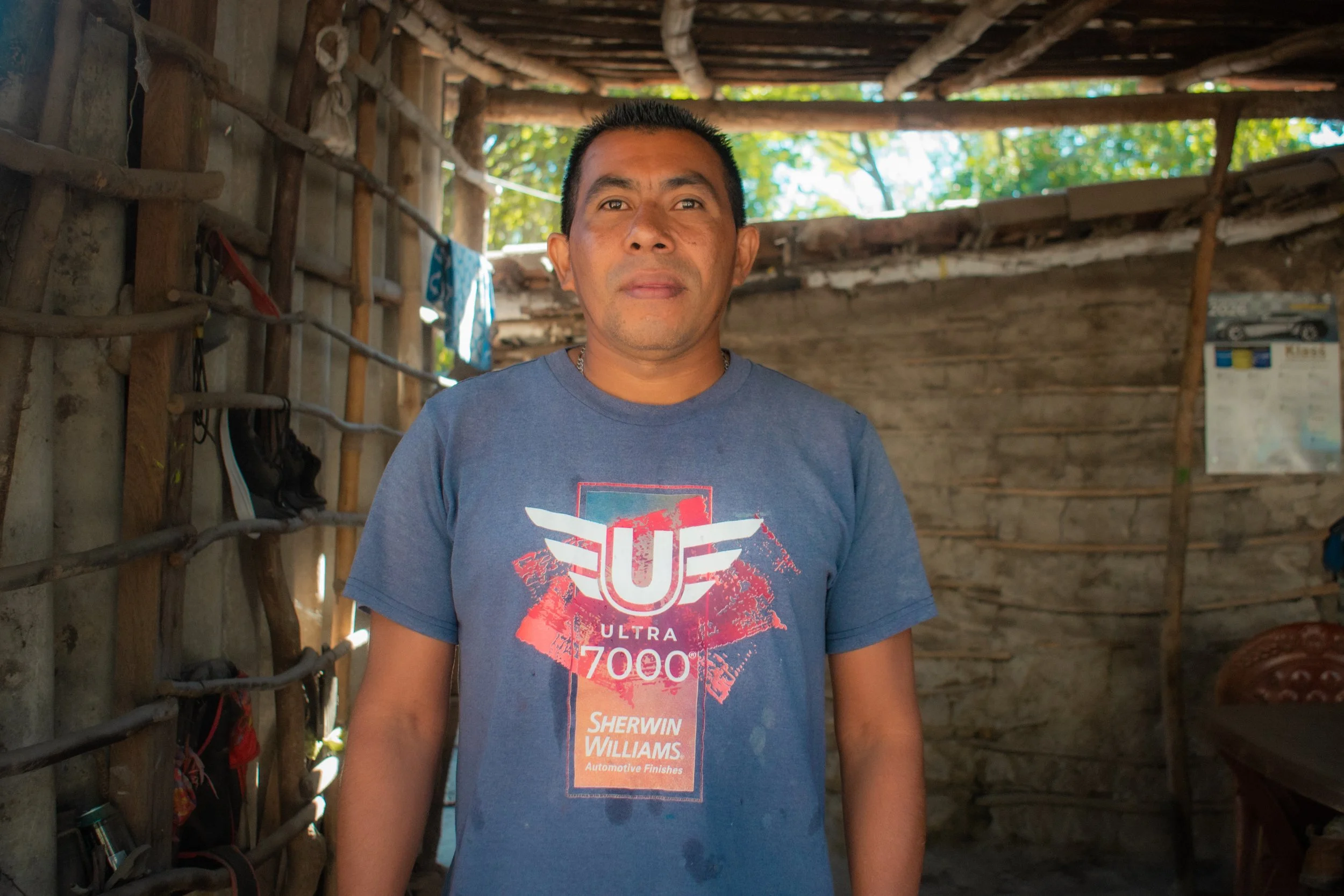 His house was built 13 years ago, he has always lived in the same place, he lives next door to his mother. All the house is made of bahareque and clay tiles for the roof.