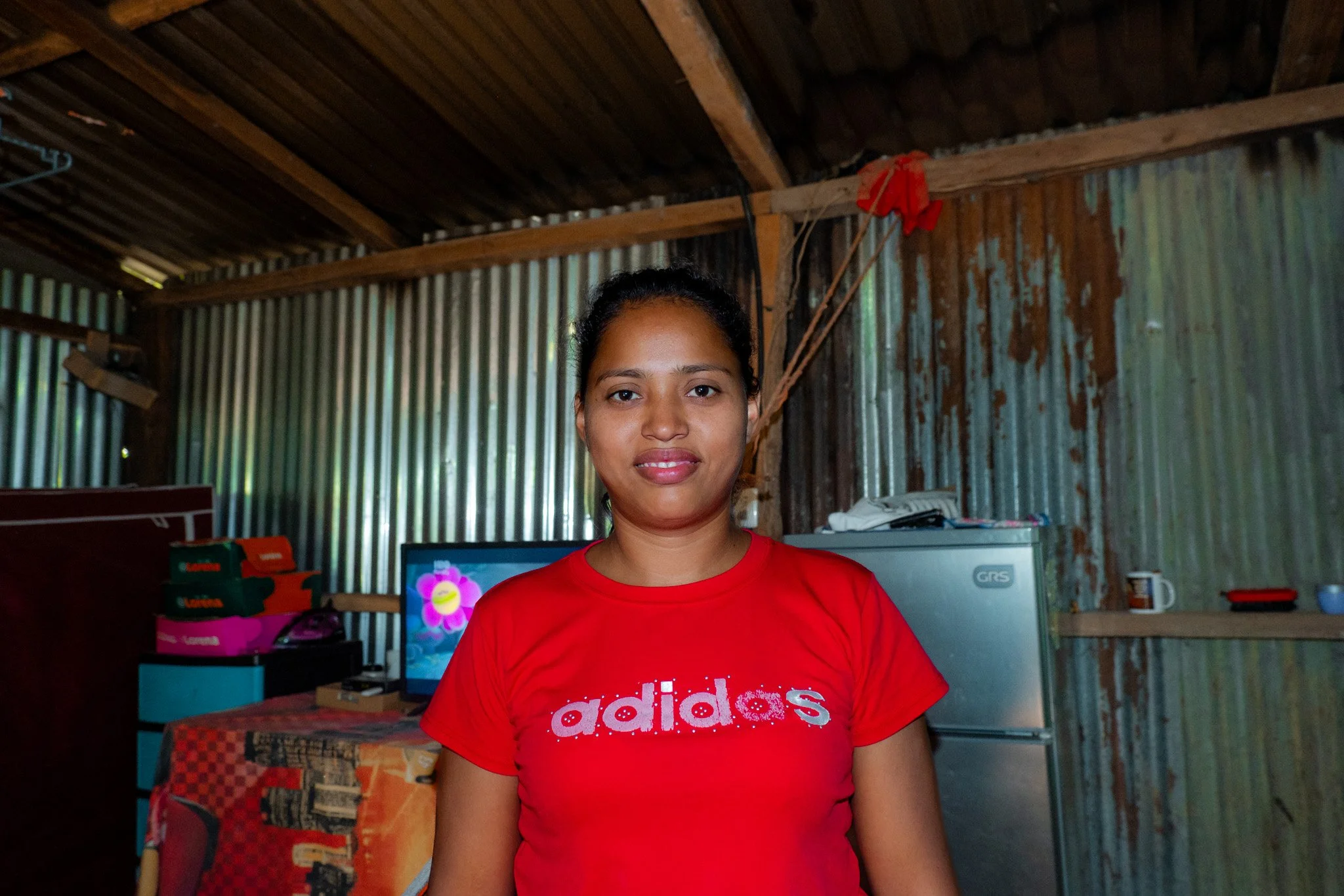 She has been living in her current home for six years. The house was built by the beneficiary's father and her partner. It is made of metal sheets and wood. Both the wood and the metal sheets are in poor condition.