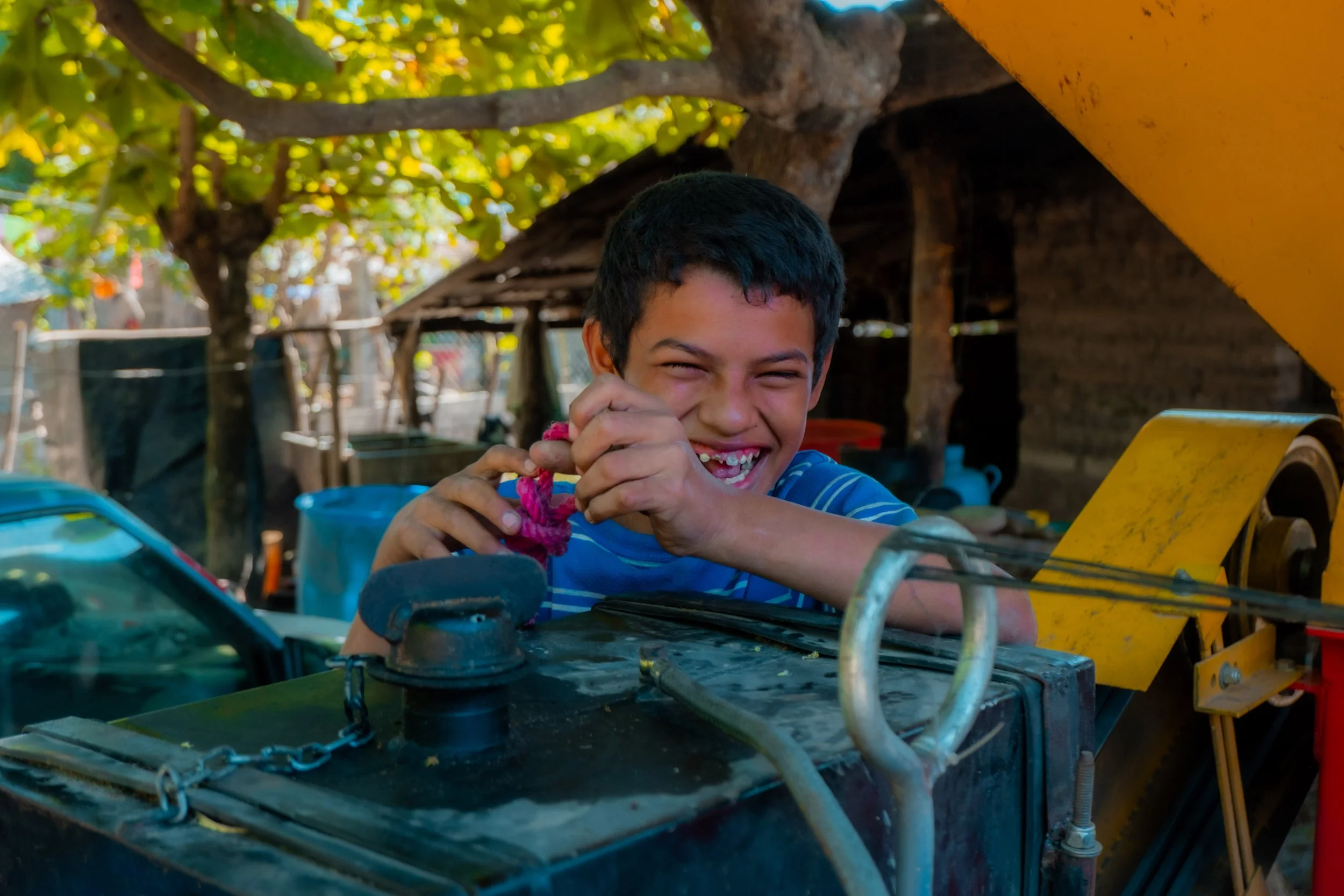 Neftali enjoys playing at home with his brother and his sister.