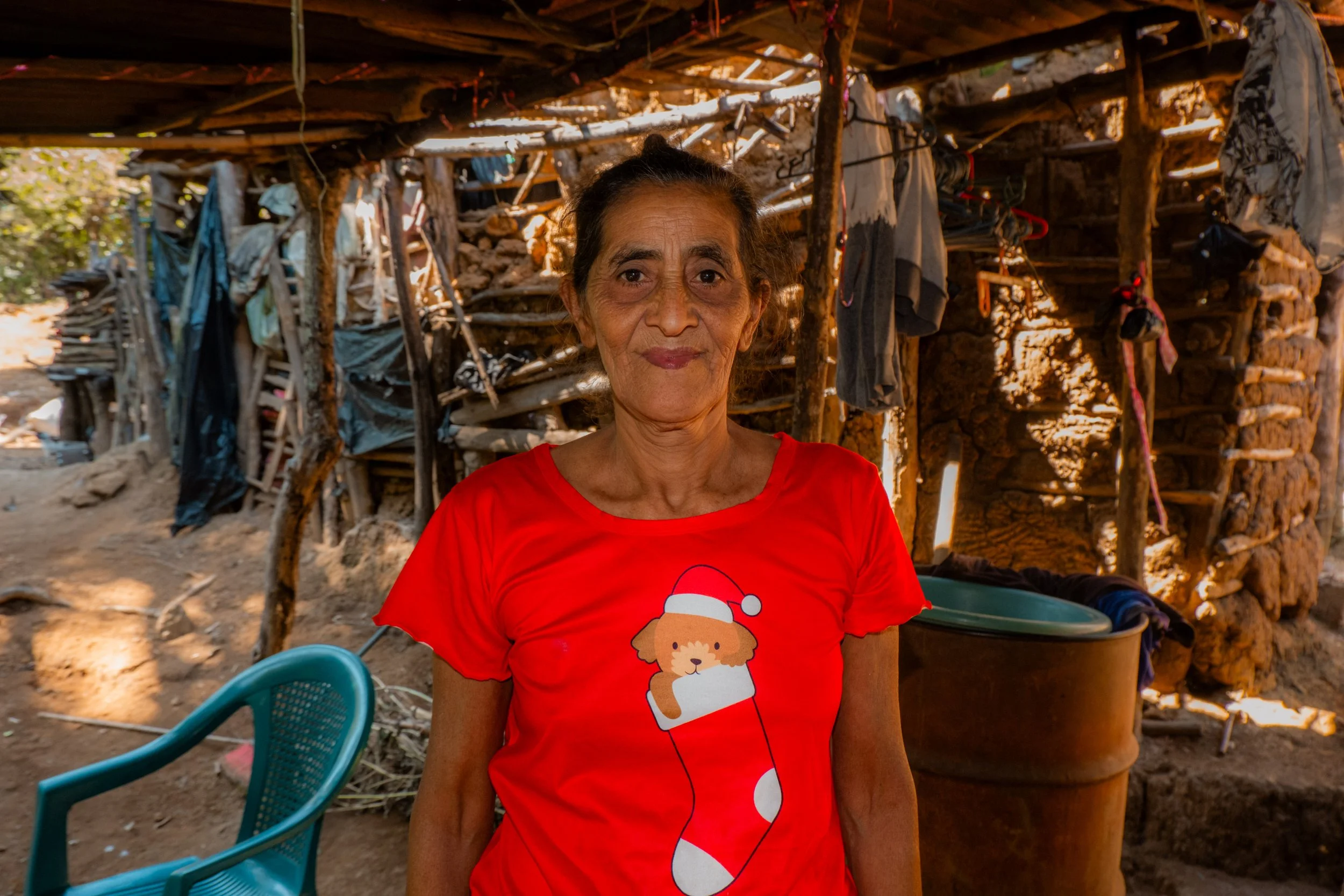 They have been living in the same house for 7 years now, Maria’s children built the house for her, they made it by using mud, bamboo sticks, wood and sheet metal. Their main issue with the house is the rain, as water gets inside the house every rainy season.