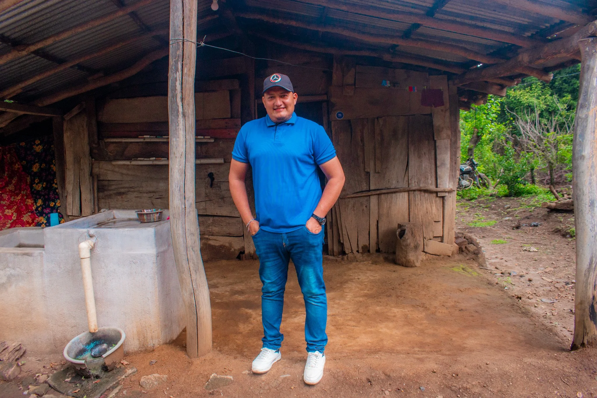 The house is made of 80 percent wood, and the roof is made of metal sheets, but because of the rain, the house has often flooded, as a large puddle forms around the house because of its location. He has tried to make repairs, but the inside keeps getting wet.