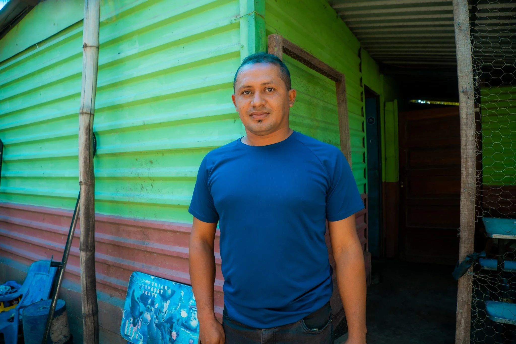 They have lived in this house for more than eight years. The house is made of metal sheets, which are somewhat worn out. The land belongs to one of Rocío’s aunts, who gave her permission to build their shelter home there.