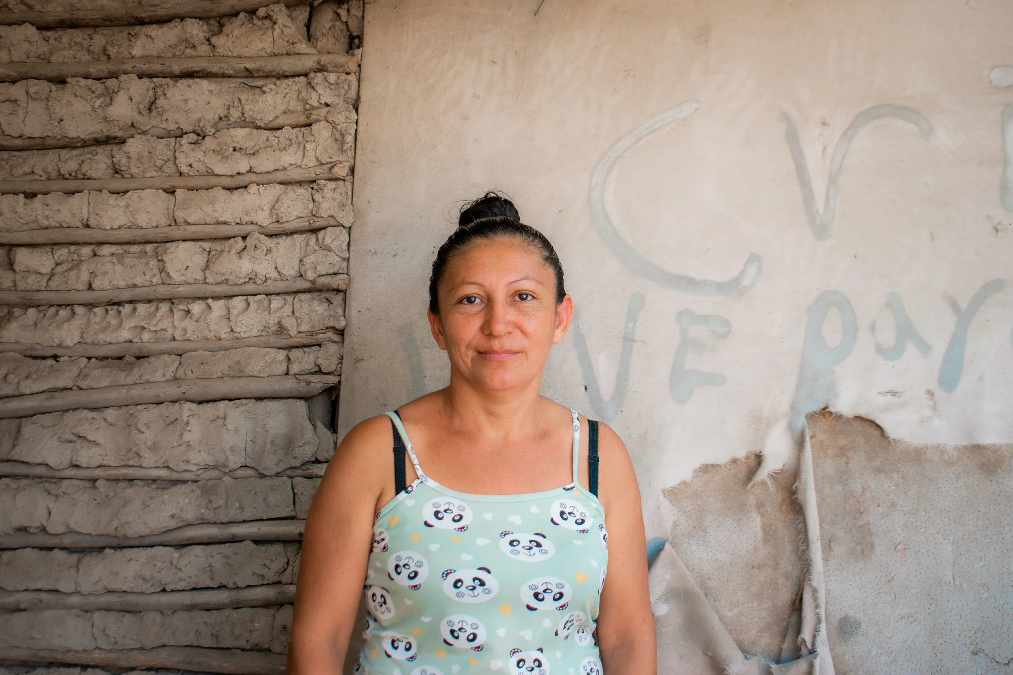 The house was built over 20 years ago. Most of it is made of plywood and bahareque (a mixture of mud and bamboo sticks), but both materials are in poor condition. There is not enough space inside the house, so Dina and her husband even sleep outside in hammocks.
